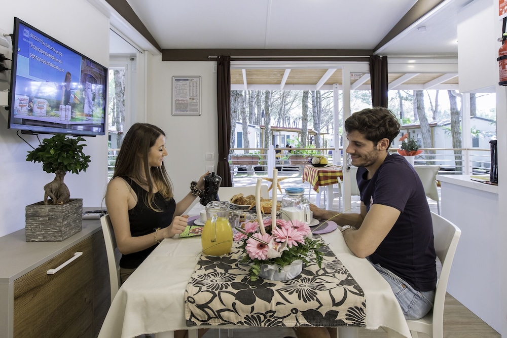 Vela Blu Camping Village in Cavallino-Treporti liegt am Meer, eine 4-minütige Fahrt von Lido-Union-Strand und 8 Autominuten von Wasserbus Punta Sabbioni entfernt. Dieser Campingplatz in Strandnähe ist 5 km von Marina di Venezia und 9,9 km von Jesolo-Strand entfernt. Fühl dich in einem der 167 klimatisierten Zimmer, die Kochnischen bieten, die über Kühlschränke und Öfen verfügen, wie zu Hause. 22 Zoll groáe Flachbildfernseher mit Satellitenempfang sorgen fr gute Unterhaltung; auáerdem steht ein WLAN-Internetzugang (kostenlos) zur Verfgung. Zur Austattung gehören Safes, die Zimmer werden wöchentlich sauber gemacht und auf Anfrage erhältst du Folgendes: Babybetten (kostenlos). Entfernungen werden bis auf 0,1 Kilometer gerundet.