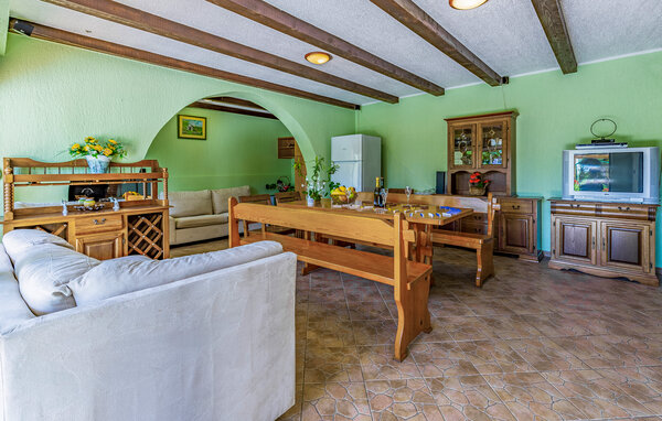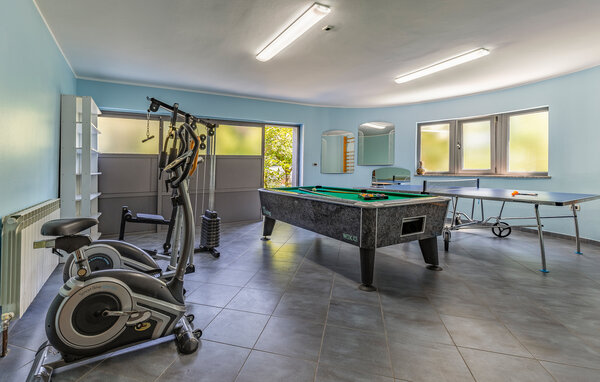 Genießen Sie Ihren Urlaub in diesem Haus, das Ihnen inmitten einer grünen Oase Ruhe und Entspannung verspricht. Das Haus ist geräumig und komfortabel eingerichtet. Das Wohnzimmer mit seinen rustikalen Holzbalken und warmen Farben schafft eine einladende Atmosphäre. Für aktive Urlauber gibt es einen eigenen Fitnessraum mit verschiedenen Geräten, damit die Fitness im Urlaub nicht zu kurz kommt. Auch ein Billardtisch steht zur Verfügung, um sich bei einer Runde Poolbillard zu vergnügen.