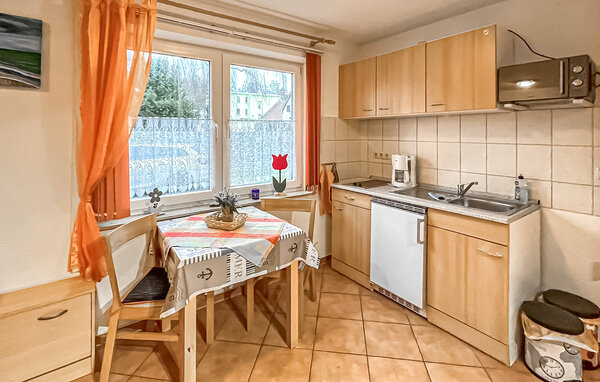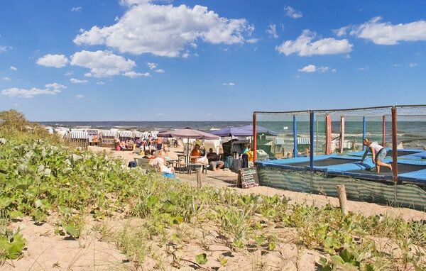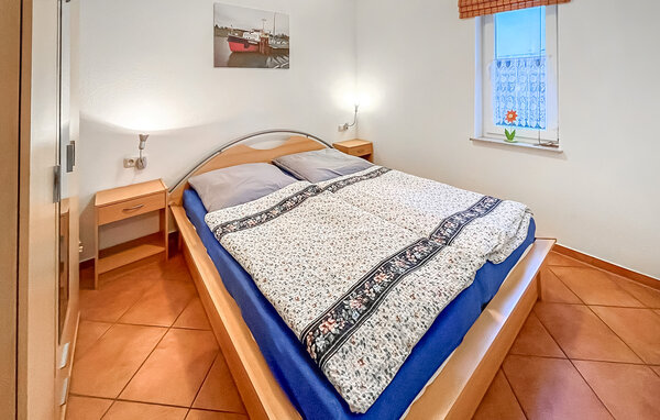 Diese eine von drei Ferienwohnungen befindet sich in einem separaten Ferienhaus im Reihenhausstil mit separatem Zugang. Ruhige Lage in einer Seitenstraße, ca. 500 m vom Strand entfernt. Die Wohnung verfügt über ein Wohnzimmer (Doppelschlafcouch, Essecke, TV, Radio), Schlafzimmer mit Doppelbett, Pantryküche mit 2-Plattenherd und Mikrowelle, Dusche/WC, Zentralheizung. Zur Wohnung gehört eine möblierte Terrasse mit Grill und ein kostenfreier Parkplatz. Nutzung einer Waschmaschine nach Absprache möglich. Im Gesamtpreis sind enthalten: Bettwäsche, Wasser- und Energieverbrauch. Sie müssen Ihre eigenen Handtücher mitbringen. Haustiere: Ein kleiner Hund (keine Katze) bis zu einer Größe von 40 cm ist in dieser Unterkunft gestattet. Bitte bringen Sie eine Matte/Schlafmöglichkeit (Decke, Korb) für Ihr Tier mit.
