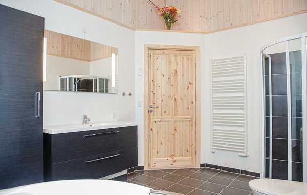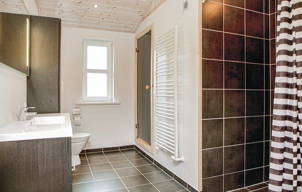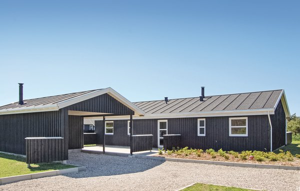 Auf einem großen, offenen Naturgrund und das Meer, den breiten Sandstrand und den Ort Løkken in fußläufiger Entfernung liegt dieses Ferienhaus. Im Haus gibt es zwei Badezimmer, eines mit Whirlpool, das andere mit Sauna. Auf den beiden gegenüberliegenden Seite des Hauses liegen