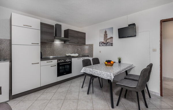 Die funktionale Einrichtung dieser Wohnung schafft die passende Basis für entspannte Ferientage: Ein bequemes Sofa, eine moderne Küche und ein Fernseher laden zum Abschalten ein und sorgen dafür, dass Sie sich schnell wie zuhause fühlen. Ob beim Lesen, beim gemeinsamen Kochen oder bei einem gemütlichen Filmabend – hier findet jeder seine persönliche Auszeit.