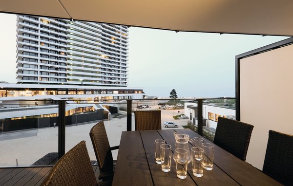 Auf dem Balkon können Sie die frische Ostseeluft und das Rauschen der Wellen genießen oder gemeinsame Mahlzeiten mit der Familie einnehmen. Genießen Sie hier den Blick auf die Promenade bis hin zur Ostsee.
