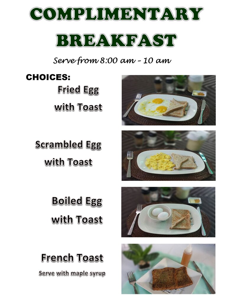 - Aufpreis für das einheimische Frühstück: ca. 199 PHP bis 299 PHP für Erwachsene und ca. 199 PHP bis 299 PHP für Kinder