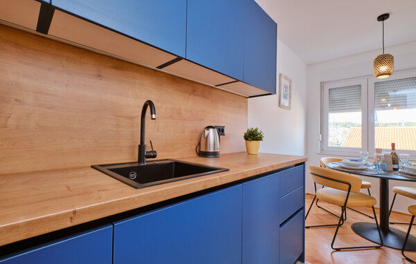 Diese moderne Wohnung vereint Eleganz und Behaglichkeit auf sehr harmonische Weise. Durch bodentiefe Fenster fällt viel warmes Tageslicht ins Innere, während Sie einen schönen Blick auf die Stadt und das Meer haben. Mediterrane Farben, eine warme Holzoptik und eine bequeme Sofalandschaft sorgen zusätzlich für einen entspannten Aufenthalt. Egal ob Sie Ihre Lieblingsmusik oder gemeinsam kochen – hier bestimmen Sie den Rhythmus Ihres Tages.