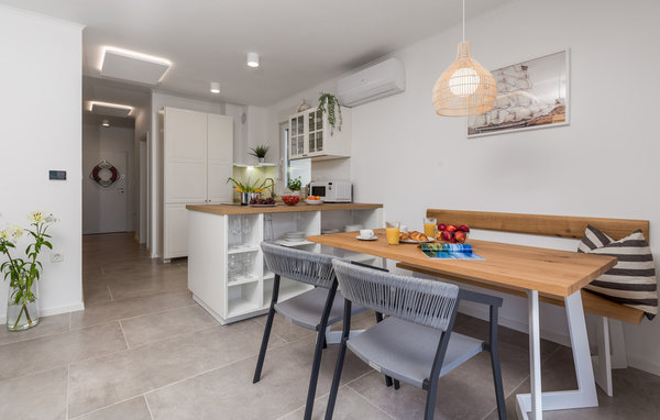 Verbringen Sie einen unvergesslichen Urlaub in dieser hübschen Wohnung, die sich im ersten Stock befindet und über eine große Terrasse verfügt. Hier können Sie wunderbar einen herrlichen Panoramablick auf das Zentrum von Mali Losinj und das Meer, sowie die kroatische Sonne genießen. Sitzen Sie gesellig zusammen und essen Sie gemeinsam oder lesen Sie in aller Ruhe in lang liegen gebliebenes Buch. Die Ausstattung der Wohnung ist modern, und die Lage ist in der Nähe des Zentrums, aber immer noch ruhig.
