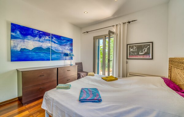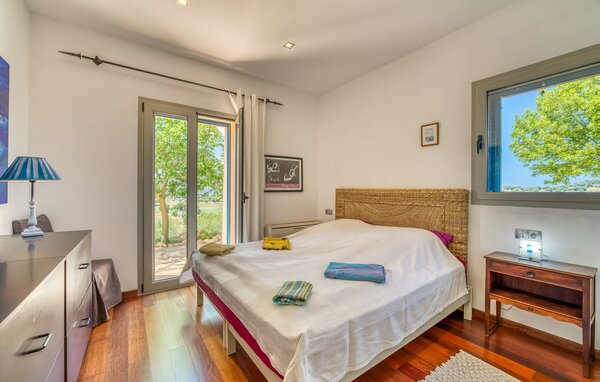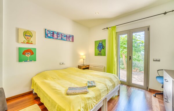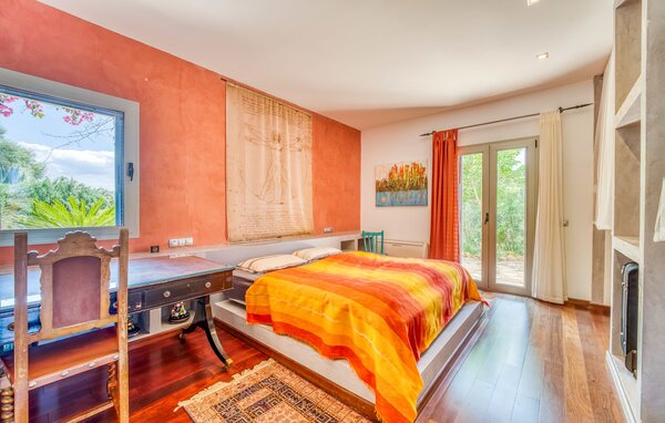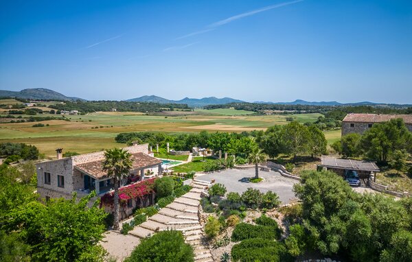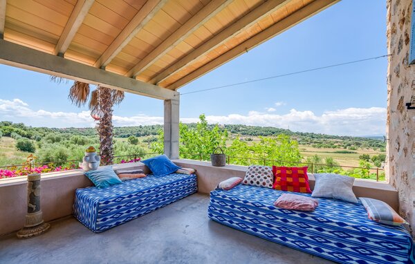 Das Innere des Ferienhauses ist ebenso liebevoll gestaltet wie das Äußere. Die farbenfrohe, kreative Dekoration vermittelt Lebensfreude und ein heimeliges Gefühl. Der großzügige, lichtdurchflutete Wohnbereich mit maßgefertigten Regalen, einer bequemen Ledercouch und einem beeindruckenden Kamin geht fließend in den Essbereich und eine offene, moderne Küche über. Rundum Fenster bieten einen herrlichen Blick über die Landschaft. Vom Hauptwohnbereich führt eine Treppe hinunter in den Keller. Es gibt vier individuell eingerichtete Schlafbereiche. Drei davon verfügen jeweils über einen eigenen Ausgang zum Garten sowie eine Klimaanlage. Zwei der Doppelzimmer verfügen über ein eigenes Bad. Die anderen beiden teilen sich ein eigenes Badezimmer. Auf der oberen Wohnebene befindet sich außerdem ein Gäste-WC. Das Haus ist mit Heizung, einer Musikanlage und stabilem WLAN ausgestattet. Das Ferienhaus liegt auf einem großen Hügelgrundstück im Osten Mallorcas. Das 6 km entfernte Manacor bietet gute Einkaufsmöglichkeiten. Verschiedene Sandstrände an der Ostküste sind 20-25 km entfernt.