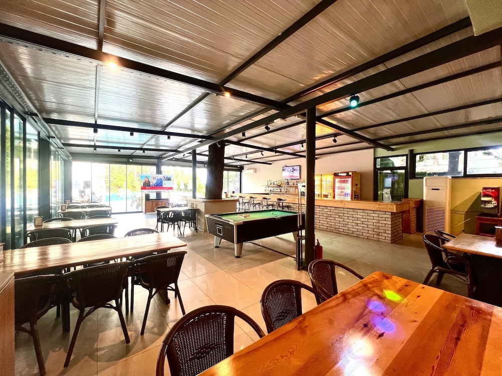 Zum Angebot gehören eine rund um die Uhr besetzte Rezeption, eine Gepäckaufbewahrung und ein Tresorfach an der Rezeption. Nutz folgende Freizeiteinrichtung: Außenpool. Du kannst aber auch den schönen Ausblick von folgenden Punkten genießen: Terrasse und Garten. Auch kostenloses WLAN und einen Fernseher im öffentlichen Bereich bietet dieses Hotel. Genieße Mittagessen oder Abendessen bei einem Restaurant dieses Hotels. Oder bleib gemütlich auf deinem Zimmer und nutz den Zimmerservice (bitte Zeiten beachten). Entspann dich mit einem erfrischenden Getränk an der Bar/Lounge oder der Poolbar.Karte von Club Palm Garden Keskin