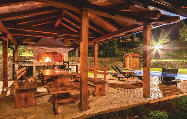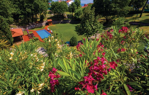 Auf einem großen, umzäunten Grundstück befindet sich dieses komfortable Ferienhaus. Es besteht aus einem Erdgeschoß, 1. und 2. Stock und ist mit Innentreppen verbunden. Auf jeder Etage sind große Terrassen mit Sonnenliegen und Sitzgarnituren, wo Sie Ihren Frühstückskaffee und den herrlichen Ausblick genießen können. Im zentralen Teil der Außenanlage, vom Grünen umgeben, befindet sich auch ein Swimmingpool, der in den heißen Sommertagen für Erfrischung sorgen wird. Im Erdgeschoß vergnügen Sie sich im Freizeitraum mit Billard und Tischfußball. In nur wenigen Fahrminuten erreichen Sie Opatija und die ersten Badestrände, schöne Kiesstrände gibt es auch in Icici und Medveja.