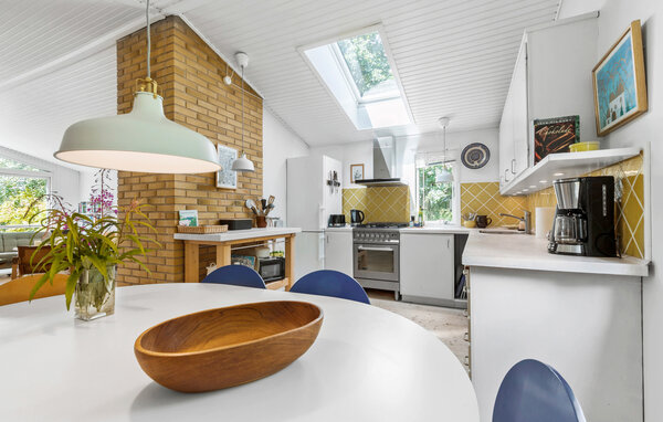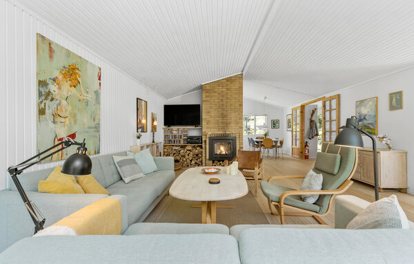In diesem charmanten Ferienhaus in Liseleje erwartet Sie eine harmonische Kombination aus modernem Design und gemütlichem Ambiente. Der große, lichtdurchflutete Wintergarten mit Blick auf die wunderschöne Natur lädt zum Verweilen ein und schafft eine einzigartige Wohlfühlatmosphäre. Die hellen, freundlichen Innenräume bieten Ihnen genügend Platz zum Entspannen und Genießen. Befeuern Sie den Kamin, treffen sich zu Filmabenden auf dem Sofa oder zaubern in der Küche leckere Mahlzeiten.