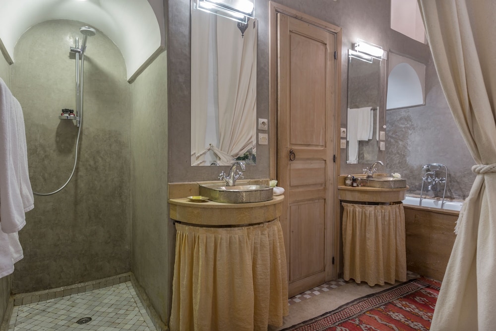 In Marrakesch (Mechouar-Kasbah) gelegen, ist Riad Azoulay nur 3 Gehminuten von Bahia-Palast und 9 Gehminuten von El-Badi-Palast entfernt. Dieser Riad mit Wellnessangebot ist 1,7 km von Djemaa el Fna und 2 km von Koutoubia-Moschee entfernt. Mach es dir in einem der 9 Zimmer, die individuell ausgestattet sind, gemütlich. Ein WLAN-Internetzugang (kostenlos) steht zur Verfügung. Es gibt eigene Badezimmer, die über Designer-Toilettenartikel und Bidets verfügen. Zur Austattung gehören Safes und Schreibtische sowie Telefone, mit denen du kostenlose Ortsgespräche führen kannst. Entfernungen werden bis auf 0,1 Kilometer gerundet.