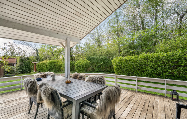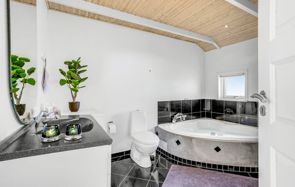 Dieses schöne Ferienhaus ist im mondänen Gebiet am Strib Strand hoch gelegen. Das Haus hat mehrere schöne Terrassengebiete, von denen eins überdacht ist. Es ist somit immer möglich, eine windstille Ecke zu finden. Das Ferienhaus hat ein schönes Wohnzimmer mit Scheitofen. Neben dem Wohnzimmer liegt die offene gut ausgestattete Küche. Das schöne Badezimmer des Hauses hat sowohl Whirlpool als auch Sauna, so dass der Körper verwöhnt werden kann. Überall im Ferienhaus und auf der Terrasse können Sie bequem den schnellen Internetanschluss benützen. Das Ferienhaus steht nur wenige Minuten zu Fuss vom familienfreundlichen Strand. Eine Treppe führt zum Strand hinunter.