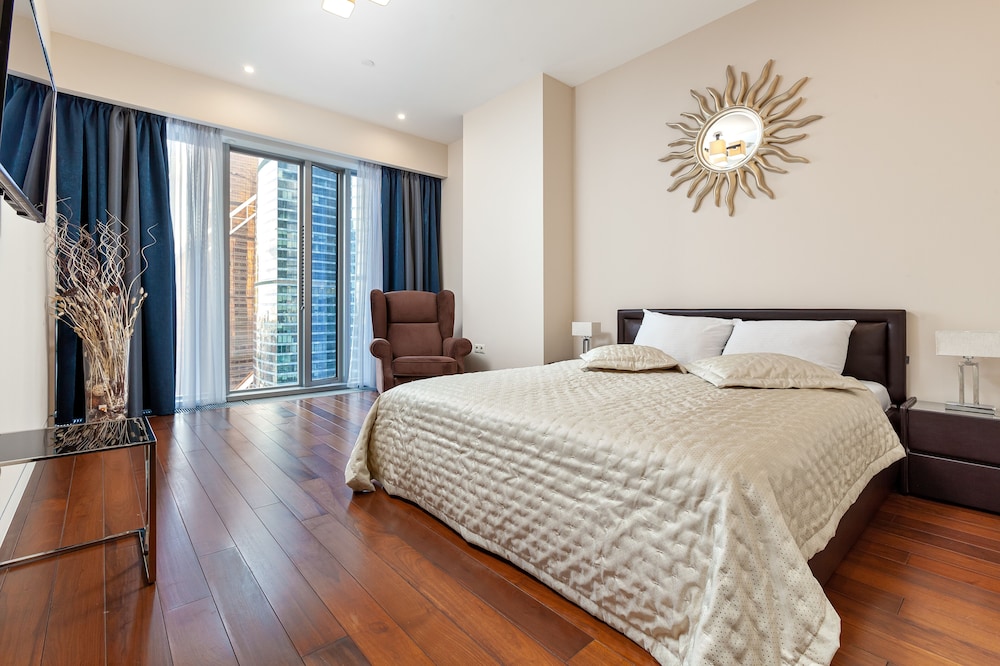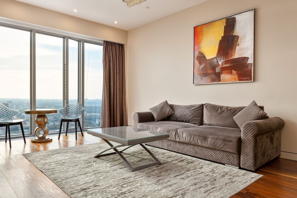 Apartment Moscow City Eye Tower liegt im Herzen von Moskau, nur wenige Schritte von Dritter Verkehrsring und 3 Gehminuten von Moskau City entfernt. Dieses Apartment im luxuriösen Stil ist 0,7 km von Expocenter und 2,8 km von Weißes Haus entfernt. Fühl dich in einem der Zimmer, die individuell ausgestattet sind und Küchen bieten, die über große Kühlschränke/Gefrierfächer und Öfen verfügen, wie zu Hause. In deinem Zimmer findest du ein Pillowtop-Bett mit Bettwäsche aus ägyptischer Baumwolle vor. 49 Zoll groáe Smart-TVs mit Digitalempfang sorgen fr gute Unterhaltung; auáerdem steht ein WLAN-Internetzugang (kostenlos) zur Verfgung. Zur Austattung gehören separate Sitzecken und Mikrowellen; die Zimmer werden auf Anfrage sauber gemacht. Entfernungen werden bis auf 0,1 Kilometer gerundet.