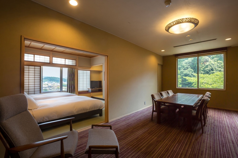 Kotohira Kadan in Kotohira (Konpira Onsen) liegt 15 Minuten Fahrt entfernt von: New Reoma World und Museum Kinryo-no-Sato Sake. Dieser Ryokan im luxuriösen Stil ist 15,6 km von Setonaikai-Nationalpark und 0,7 km von Konpira Grand Theatre entfernt. Fühl dich in einem der 43 Zimmer, die Kühlschrank und Minibar bieten, wie zu Hause. LED-Fernseher mit Digitalempfang garantieren Unterhaltung und es gibt außerdem einen WLAN-Internetzugang (kostenlos). Die Badezimmer bieten kostenlose Toilettenartikel und Bidets. Zur Austattung gehören Telefone ebenso wie Safes und Schreibtische. Entfernungen werden bis auf 0,1 Kilometer gerundet.