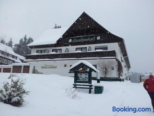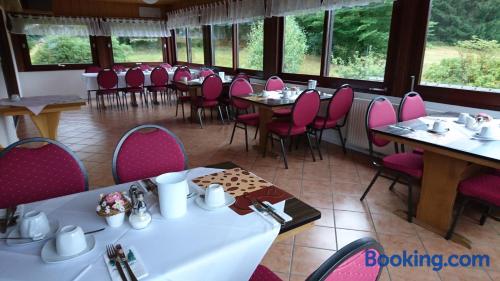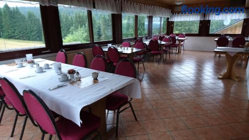Quellenhof Altenau offers a terrace with a view and free WiFi access is available. The hotel is situated in Altenau.Each of the rooms at the hotel comes equipped with a private bathroom with a hairdryer. Some of the rooms offer a balcony and some include a view of the surrounding mountains.A fresh breakfast is served Every morning at the Quellenhof Altenau, and the restaurant offers half-board for groups by arrangement.Popular activities in the surrounding area include hiking, cycling and skiing.Free private parking is available at Quellenhof Altenau.In response to Coronavirus (COVID-19), additional safety and sanitation measures are in effect at this property.