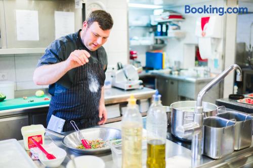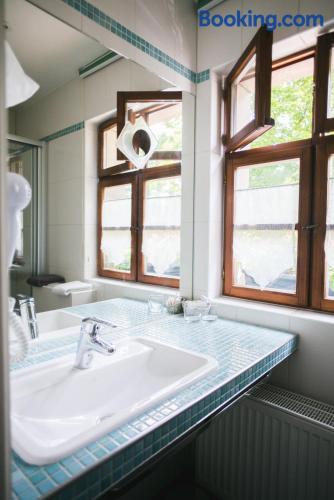 Located directly on the beautiful Ludwig-Kanal, this endearing hotel in southern Nuremberg is a 15-minute bus journey from the city center and a 7-minute car journey from the exhibition grounds. A bus stop can be found right outside the front door of the Hotel Restaurant Zirbelstube, and the motorway can be accessed with ease. Classified as a historic monument, the listed sandstone hotel building was lovingly converted to a hotel and restaurant in 1990. With its country house charm and personable staff, it has been attracting visitors from near and far ever since. Enjoy relaxing hiking and cycling tours in the picturesque surroundings during your stay. The hotel offers free rental bicycles.