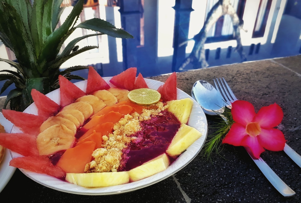 Zum Angebot gehören ein Express-Check-in, ein Express-Check-out und ein Textilreinigungsservice. Du kannst von dem kostenpflichtigen Flughafentransfer profitieren und findest vor Ort außerdem Folgendes vor: Parken ohne Service (kostenlos). Gönn dir Massagen oder genieße den schönen Ausblick von folgenden Punkten: Terrasse und Garten. Kostenloses WLAN, ein Fernseher im öffentlichen Bereich und Unterstützung bei der Tourenplanung/beim Ticketerwerb stehen ebenfalls zur Verfügung. Dieses B&B bietet ein Restaurant mit hervorragenden Speisen. Nutz alternativ den Zimmerservice. Aufgrund der lokalen Bestimmungen dürfen Besucher am Seclusion Day bzw. dem hinduistischen Neujahrsfest (Nyepi) das Unterkunftsgelände ab 06:00 Uhr 24 Stunden lang nicht verlassen. Der Seclusion Day findet in der Regel im März oder April statt; die genauen Daten unterscheiden sich von Jahr zu Jahr. An diesem Tag ist eine An- oder Abreise nicht möglich. Der internationale Flughafen Bali, Ngurah Rai Airport, ist am Seclusion Day ebenfalls geschlossen.- Kontaktloser Check-in und kontaktloser Check-out sind verfügbar.