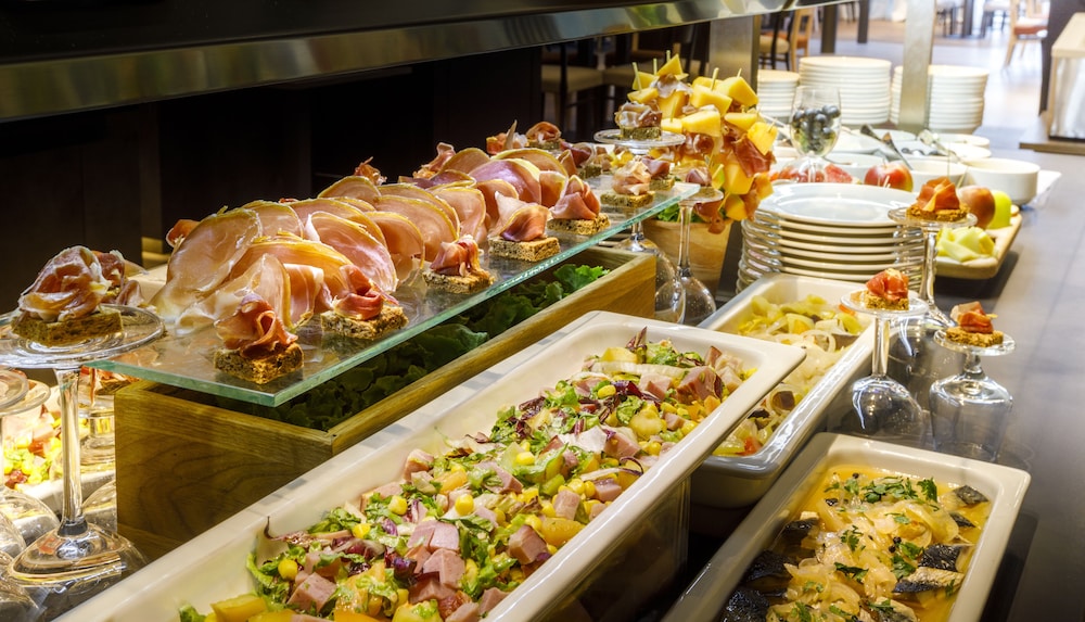 - Es sind einzeln verpackte Speisen zum Frühstück, Mittagessen und Abendessen verfügbar, auch über den Zimmerservice.