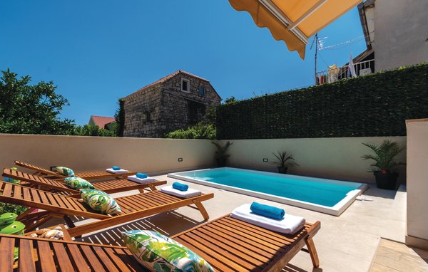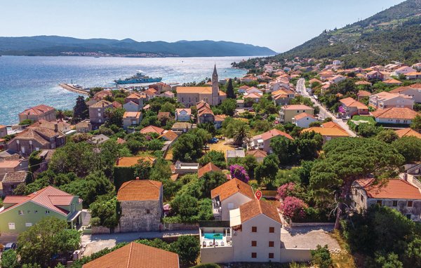 Dieses geschmacksvoll eingerichtete und sehr gut ausgestattete Ferienhaus liegt nur 60 Meter von einem Kiesstrand entfernt. Im Erdgeschoss befinden sich eine Küche, Bad, Wohnraum und Esszimmer mit Ausgang auf die Terrasse und zum Außenpool. Oben erwarten Sie zwei weitere Badezimmer und zwei Schlafzimmer, jeweils mit einem Ausgang auf die Terrasse mit wunderbarem Meerblick. Da Sie sich nur 100 Meter vom Zentrum in Orebic befinden, können Sie ganz einfach zu Fuß Restaurants und Geschäfte erreichen. Von hier können Sie auch die Fähre zur Insel Korcula nehmen. Die Überfahrt dauert nur 10 Minuten.