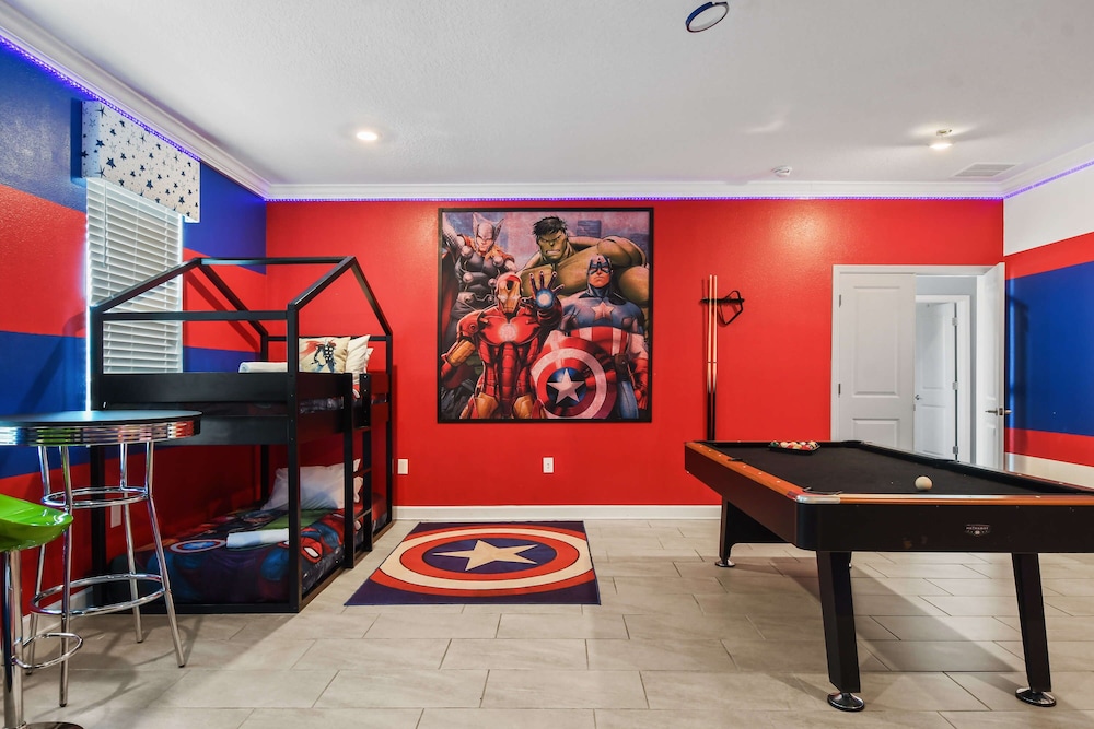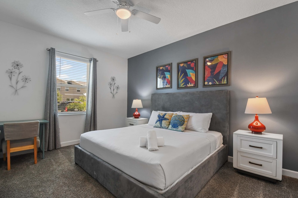 Dieses Ferienhaus in Kissimmee ist nur eine 15-minütige Fahrt von Altstadt und Disney Springs™ entfernt. Dieses Ferienhaus ist 12,9 km von Walt Disney World® Resort und 13,1 km von ESPN Wide World of Sports Complex entfernt. Dieses Ferienhaus ist individuell ausgestattet und lädt dazu ein, es sich gemütlich zu machen. Freu dich in deinem Privatbereich auf einen Patio. Das Badezimmer ist mit einer Badewanne oder Dusche und Designer-Toilettenartikeln versehen. Entfernungen werden bis auf 0,1 Kilometer gerundet.