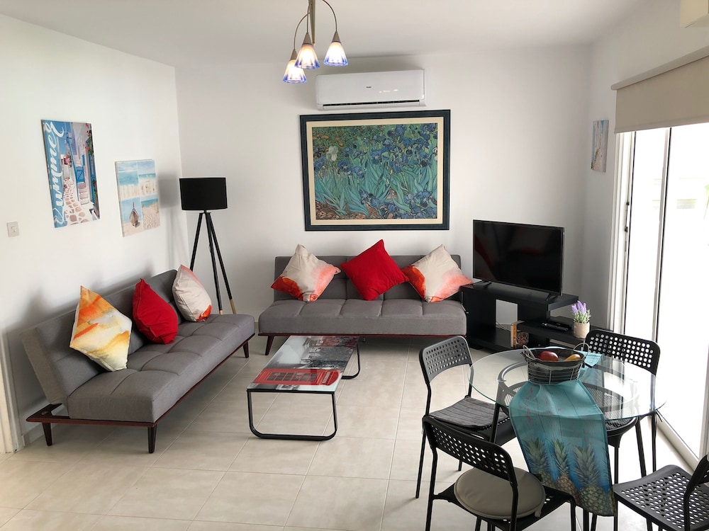 Long Beach Gardens 1 in Oroklini liegt in Strandnähe, nur eine 15-minütige Fahrt von Strand von Finikoudes und Theofilos Georgiadis Park entfernt. Dieses Aparthotel ist 9,6 km von Mackenzie Beach und 4,9 km von Hafen von Larnaca entfernt. Fühl dich in einem der 4 Zimmer, die individuell ausgestattet sind und Küchen bieten, die über Kühlschränke und Öfen verfügen, wie zu Hause. Die Zimmer haben eigene möblierte Balkone. Flachbildfernseher mit Satellitenempfang garantieren Unterhaltung und es gibt außerdem einen WLAN-Internetzugang (kostenlos). Zur Austattung gehören separate Sitzecken und Mikrowellen; die Zimmer werden einmal pro Aufenthalt sauber gemacht. Entfernungen werden bis auf 0,1 Kilometer gerundet.