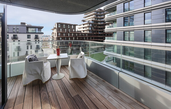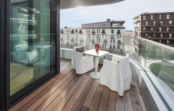 Mit hochwertigen Designermöbeln, großzügigen Glasfronten und einer überdachten Terrasse genießen Sie modernes Wohnen in stilvoller Atmosphäre. Gehen Sie in der großen Wohnung Ihrem Ferienalltag beim Kochen, Essen und Entspannen nach. Die lichtdurchfluteten Räume laden Sie zum Verweilen ein, und der private Parkplatz sowie ein Abstellraum für Fahrräder sorgen für zusätzlichen Komfort. Von hier aus blicken Sie auf das pulsierende Viertel Oosteroever, das mit seinem maritimen Flair und trendigen Angeboten begeistert.