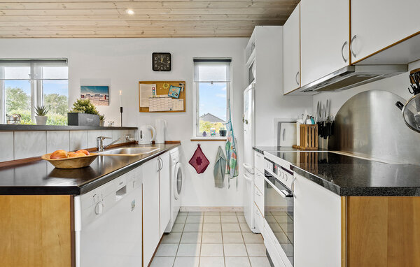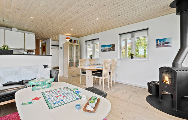 Dieses charmante Ferienhaus bietet Ihnen die perfekte Kulisse für erholsame Tage mit der Familie. Genießen Sie den gemütlichen Wohnbereich mit Kaminofen und lassen Sie die Abende bei Brettspielen ausklingen. In der voll ausgestatteten Küche können Sie gemeinsam kochen und sich auf die Mahlzeiten freuen. Rund um das Haus erstreckt sich ein großer Garten, ideal für Sommerabende mit Grillspaß und Ballspielen im Freien. Fühlen Sie sich hier wie zuhause und lassen Sie den Alltag hinter sich.