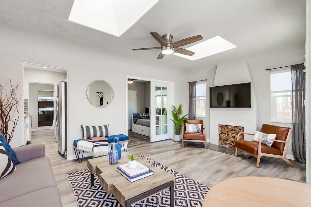 Dieses Ferienhaus in San Diego (Pacific Beach) ist nur 5 Minuten Fahrt entfernt von: Mission Bay und Mission Beach. Dieses Ferienhaus ist 10,5 km von Hotel Circle und 14,6 km von Port of San Diego entfernt. Dieses Ferienhaus ist individuell ausgestattet und lädt dazu ein, es sich gemütlich zu machen. Freu dich in deinem Privatbereich auf einen Patio. Das Badezimmer ist mit einer Badewanne oder Dusche und Designer-Toilettenartikeln versehen. Vor Ort findest du jeglichen Komfort, darunter einen Wasserkocher mit Kaffee-/Teezubehör und eine Waschmaschine mit Trockner. Entfernungen werden bis auf 0,1 Kilometer gerundet.