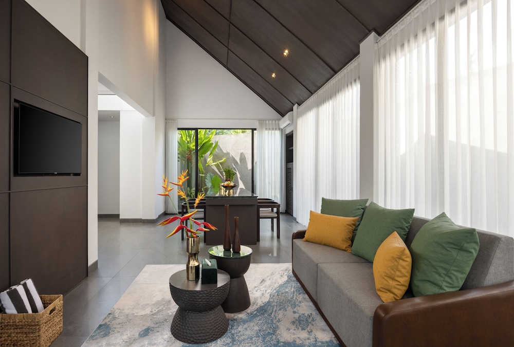 Zum Angebot gehören ein Textilreinigungsservice, eine rund um die Uhr besetzte Rezeption und eine Gepäckaufbewahrung. Vor Ort gibt es Folgendes: Parken ohne Service (kostenlos). Massagen und Körperbehandlungen garantieren Entspannung pur. Für deine Freizeit bieten sich folgende Einrichtungen an: Kochkurse, Außenpool und Fitnessmöglichkeiten. Zu den Highlights, die dieses Resort im Art-déco-Stil bietet, gehören auch kostenloses WLAN, ein Concierge-Service und Babysitting (gegen Gebühr). Es wird täglich ein kostenloser Empfang angeboten. Entspann dich mit einem erfrischenden Getränk an der Bar/Lounge oder der Poolbar. Gegen Gebühr wird täglich von 07:00 Uhr bis 10:30 Uhr ein nach Wunsch zubereitetes Frühstück angeboten. Aufgrund der lokalen Bestimmungen dürfen Besucher am Seclusion Day bzw. dem hinduistischen Neujahrsfest (Nyepi) das Unterkunftsgelände ab 06:00 Uhr 24 Stunden lang nicht verlassen. Der Seclusion Day findet in der Regel im März oder April statt; die genauen Daten unterscheiden sich von Jahr zu Jahr. An diesem Tag ist eine An- oder Abreise nicht möglich. Der internationale Flughafen Bali, Ngurah Rai Airport, ist am Seclusion Day ebenfalls geschlossen.- Aufpreis für das nach Wunsch zubereitete Frühstück: ca. 200000 IDR für Erwachsene und ca. 150000 IDR für Kinder
