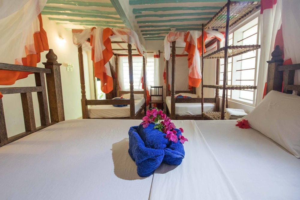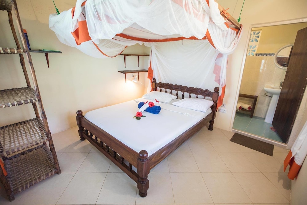 Ndame Beach Lodge in Paje liegt am Strand, nur wenige Schritte von Strand von Paje und eine 4-minütige Fahrt von Kite Centre Zanzibar entfernt. Diese Lodge in Strandnähe ist 3,9 km von Strand von Jambiani und 2,1 km von Strand von Bwejuu entfernt. Mach es dir in einem der 31 Zimmer, die individuell ausgestattet sind, gemütlich. Die Zimmer haben eigene möblierte Balkone oder Patios. Badezimmer mit Duschen sind vorhanden. Zur Austattung gehören Safes und Deckenventilatoren; die Zimmer werden täglich sauber gemacht. Entfernungen werden bis auf 0,1 Kilometer gerundet.