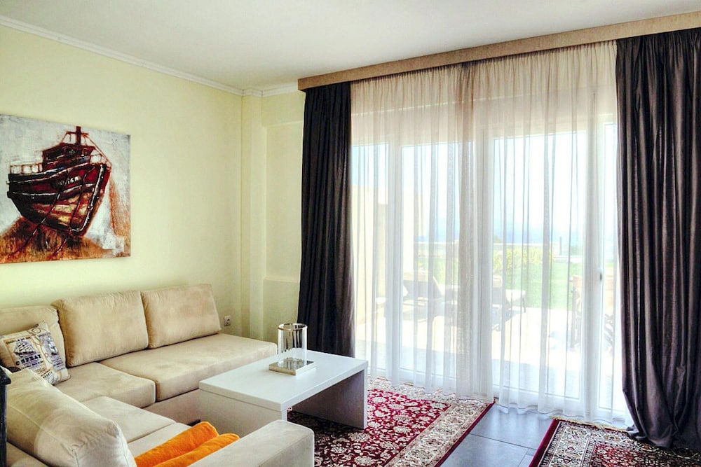 Dieses Ferienhaus in Kassandra lockt mit einem Aufenthalt, bei dem du nur eine 10-minütige Fahrt von Anlegestelle von Pefkochori und Kart Kolovos entfernt bist. Dieses Ferienhaus ist 2 km von Strand von Chaniotis und 8,8 km von Lagune von Pefkochori entfernt. Dieses Ferienhaus ist individuell eingerichtet und lädt dazu ein, es sich gemütlich zu machen. Freu dich in deinem Privatbereich auf einen Balkon. Der Digitalempfang ermöglicht dir gemütliche Fernsehabende. Entfernungen werden bis auf 0,1 Kilometer gerundet.