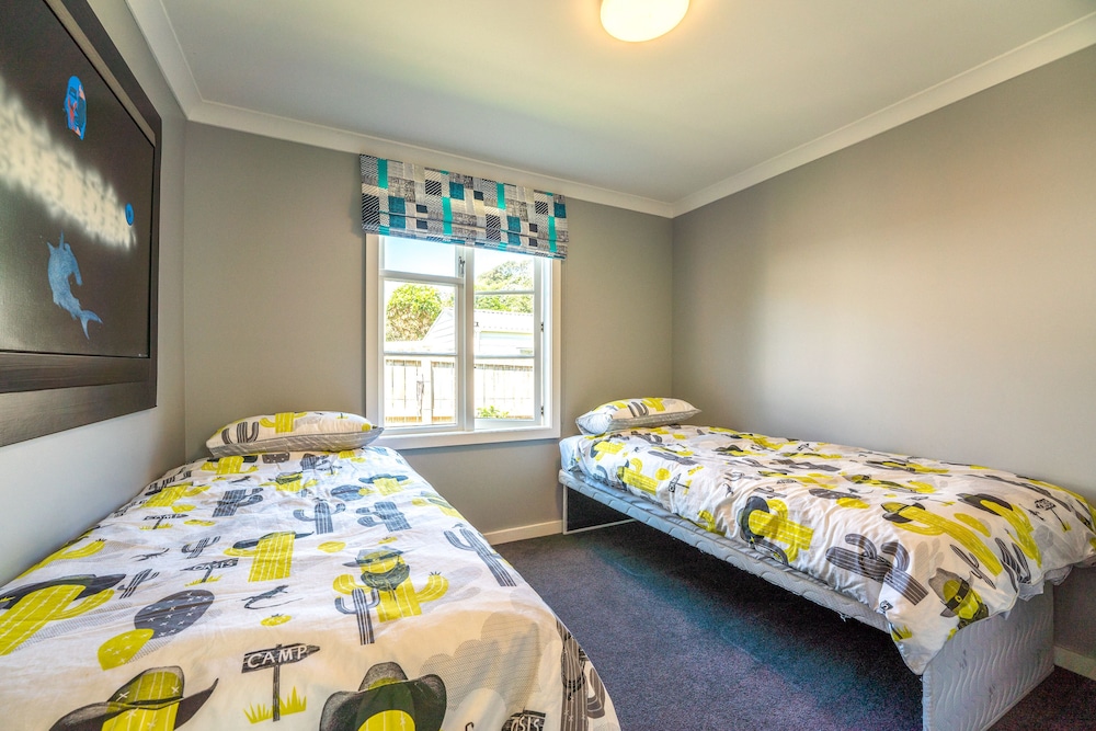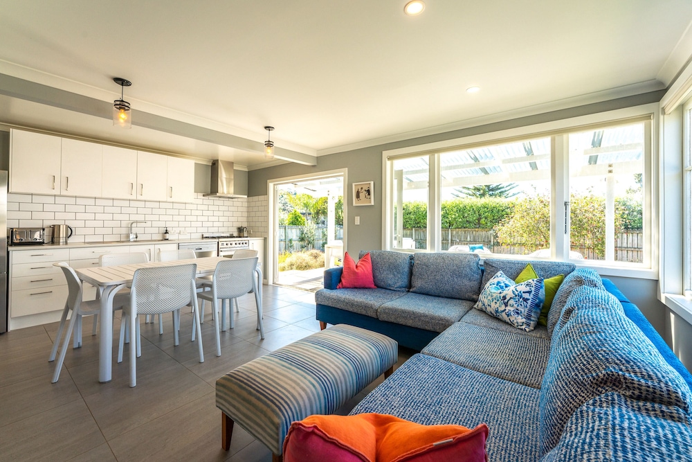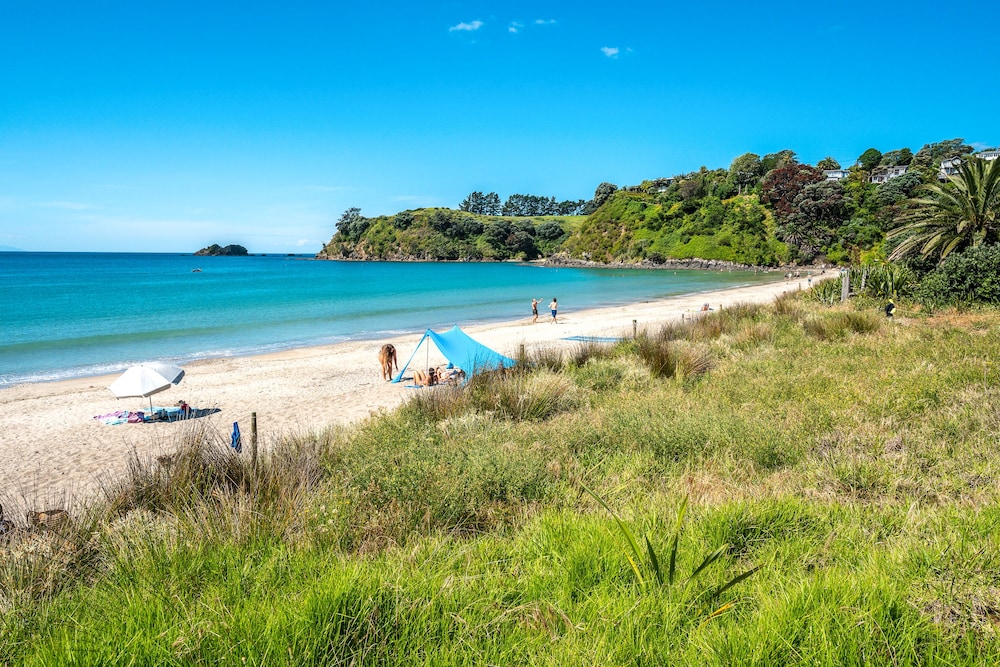 Dieses Ferienhaus in Waiheke Island (Palm Beach) ist einen 3-minütigen Fußmarsch von Palm Beach und 5 Minuten Fahrt von Anzac Bay entfernt. Dieses Ferienhaus ist 2,9 km von Surfdale Beach und 2,9 km von Hekerua Bay entfernt. Mach es dir in diesem Ferienhaus mit individueller Ausstattung gemütlich. In der Küche, die über einen großen Kühlschrank mit Gefrierfach und einen Ofen verfügt, wirst du dich wie zu Hause fühlen. Dieses Ferienhaus verfügt über ein Bett mit Pillowtop-Matratze. Ein 55-Zoll-Flachbildfernseher mit Digitalempfang sorgt für deine Unterhaltung, während du von dem WLAN-Internetzugang (kostenlos) profitieren kannst, um mit Freunden und Familie in Kontakt zu bleiben. Vor Ort findest du jeglichen Komfort, darunter einen Schreibtisch und eine separate Sitzecke. Entfernungen werden bis auf 0,1 Kilometer gerundet.