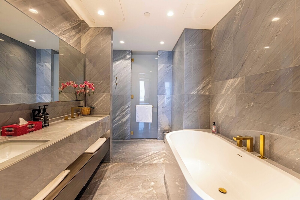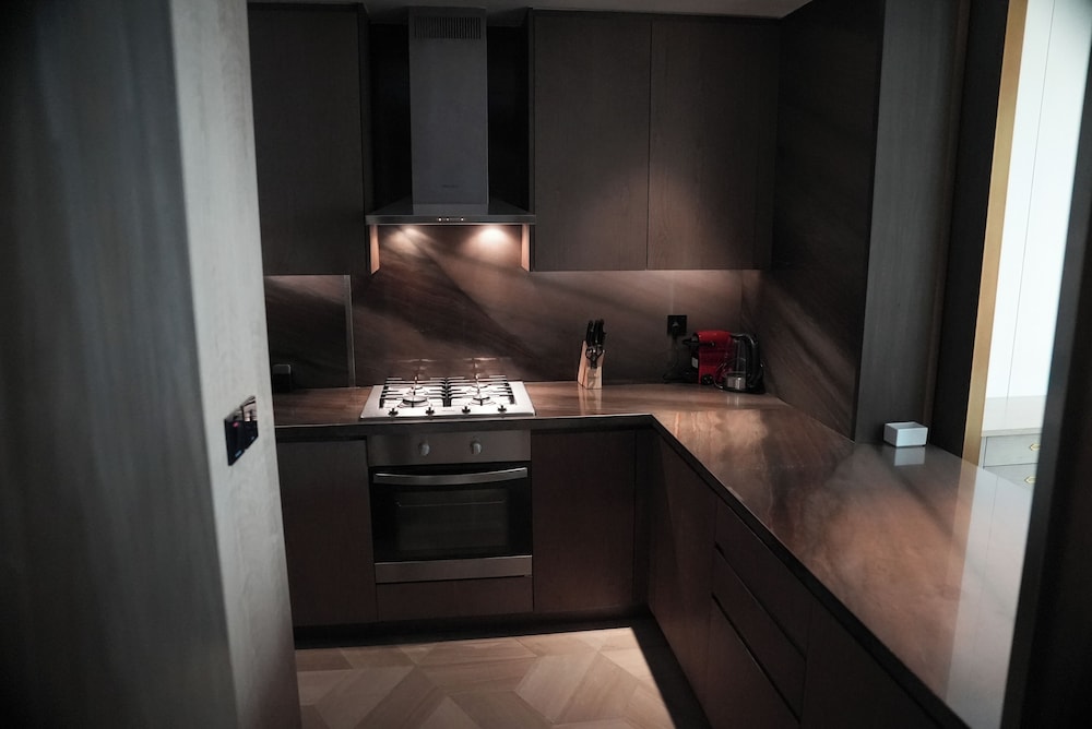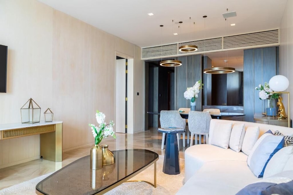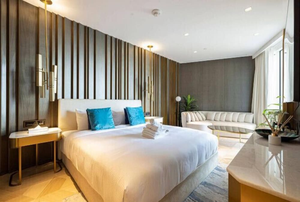 FIVE Palm Residences - Elegant Dubai in Dubai (Palm Jumeirah) ist nur 10 Minuten Fahrt entfernt von: Dubai Marina Mall und Aquaventure (Wasserpark). Dieses Apartment in Strandnähe ist 8,3 km von Marina Beach und 9,3 km von Burj Al Arab entfernt. Fühl dich in einem der 9 Zimmer, die Küchen bieten, die über Kühlschränke und Mikrowellen verfügen, wie zu Hause. Flachbildfernseher mit Satellitenempfang garantieren Unterhaltung und es gibt außerdem einen WLAN-Internetzugang (kostenlos). Zu den Highlights gehören Safes in Laptop-Größe und Wasserkocher. Entfernungen werden bis auf 0,1 Kilometer gerundet.