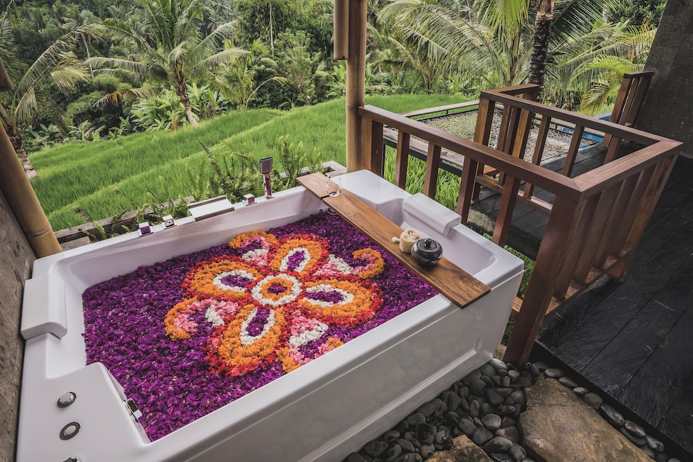 Maar Resort & Spa Ubud by Ini Vie Hospitality in Payangan ist nur eine 15-minütige Fahrt von Affenwald von Ubud und Ubud Traditional Art Market entfernt. Dieses Resort ist 13,5 km von Ubud Palace und 5,7 km von Mango Baum Spa entfernt. Fühl dich in einem der 10 klimatisierten Zimmer mit Minibar und Smart-TV wie zu Hause. Ein WLAN-Internetzugang (kostenlos) ist ebenso verfügbar wie Digitalempfang. Die Badezimmer verfügen über Badewannen und Duschen (separat), Regenduschen und kostenlose Toilettenartikel. Zur Austattung gehören kostenloses Mineralwasser und Aufdeckservice; die Zimmer werden täglich sauber gemacht. Entfernungen werden bis auf 0,1 Kilometer gerundet.