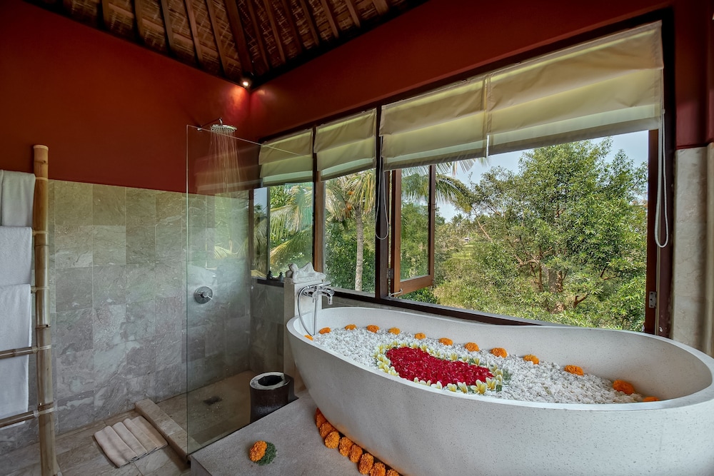 Diese Villa in Payangan liegt am Fluss und 20 km von Affenwald von Ubud sowie 19 km von Ubud Traditional Art Market entfernt. Diese Villa ist 19 km von Ubud Palace und 11,2 km von Tirta Empul Temple entfernt. Mach es dir in dieser Villa mit Klimaanlage gemütlich. In der Kochnische, die über einen großen Kühlschrank mit Gefrierfach und eine Herdplatte verfügt, wirst du dich wie zu Hause fühlen. Mit dem WLAN-Internetzugang (kostenlos) bleibst du auch während deines Aufenthalts in Verbindung. Das Badezimmer mit separater Badewanne und Dusche ist mit einer Komfortbadewanne und kostenlosen Toilettenartikeln ausgestattet. Vor Ort findest du jeglichen Komfort, darunter einen Zimmersafe und einen Schreibtisch. Zimmerreinigung steht täglich zur Verfügung. Entfernungen werden bis auf 0,1 Kilometer gerundet.