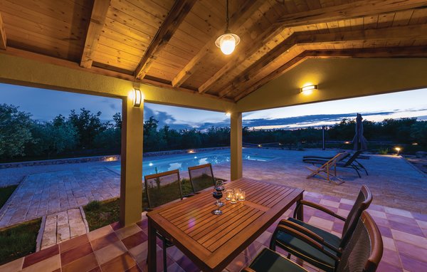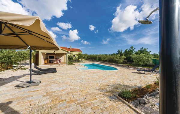 Dieses charmante und äußerst komfortable Ferienhaus liegt im Hinterland der attraktiven Stadt Biograd im Dorf Lišane Tinjske. Der vollständig eingezäunte Garten mit üppigen mediterranen Pflanzen und reichhaltigem Kinderangebot, einem Außenpool mit Blick auf die schöne Landschaft und einer überdachten Außenterrasse mit WC sowie ein Grillbereich mit Gartenmöbeln sind nur einige der Gründe, weshalb Sie hier einen angenehmen und sorgenfreien Urlaub in unberührter Natur genießen können.