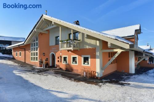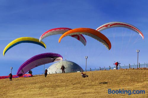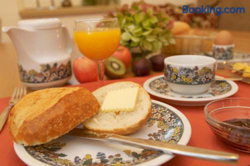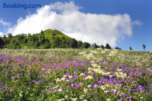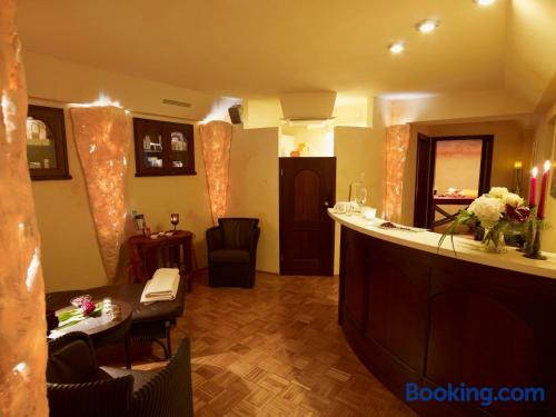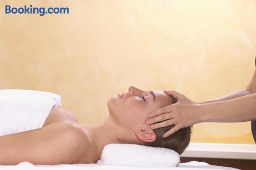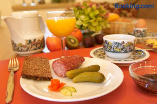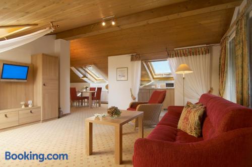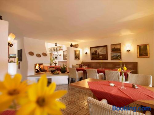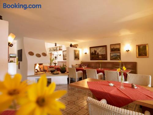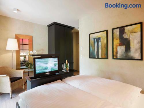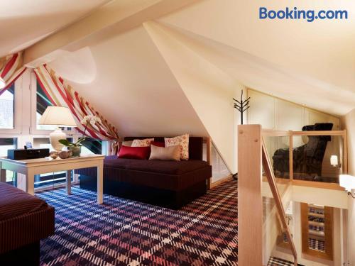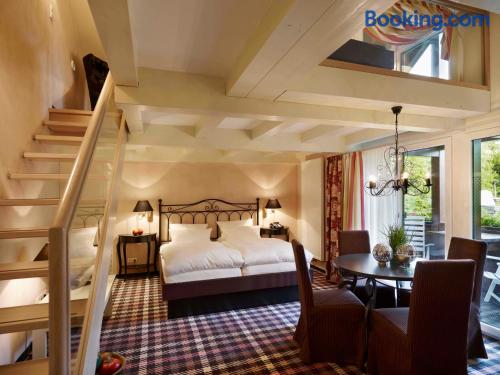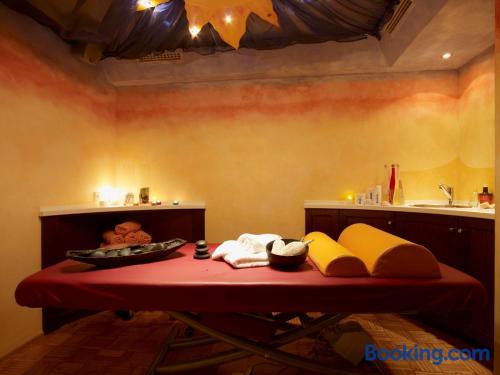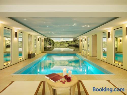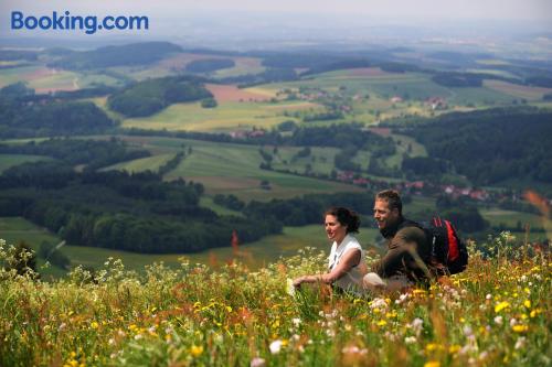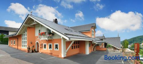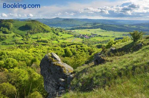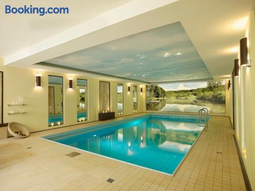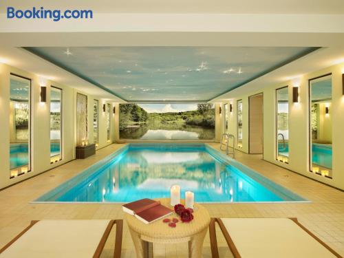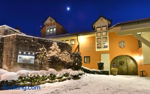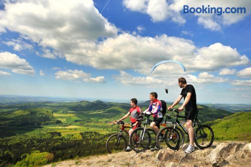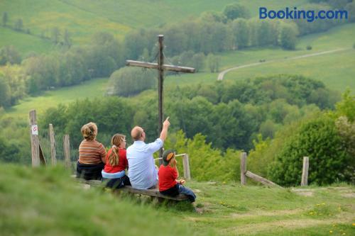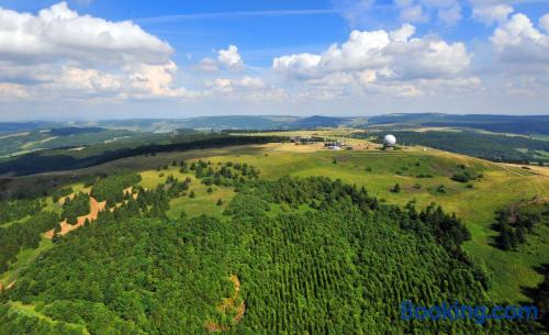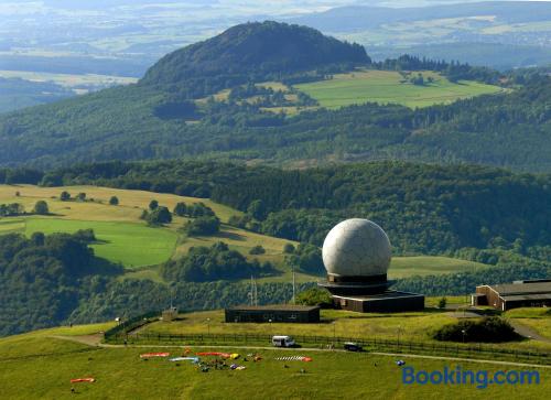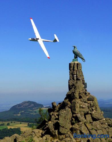 The Landhaushotel Hof Wasserkuppe’s cosy rooms feature all of the standard modern amenities, and are an ideal place to relax between day-trips. Guests can also take advantage of a selection of spa facilities, such as a sauna, steam room and an indoor swimming pool.