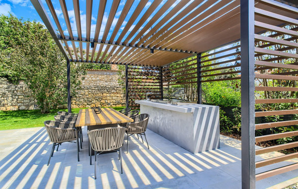 Dieses wunderbare Prachtstück, die Villa Melon, befindet sich in einem kleinen Dorf auf der Halbinsel Istrien, nicht weit von Porec entfernt. Die Villa ist ein luxuriöses, restauriertes Steinhaus und verfügt über einen privaten Pool, einen schönen gepflegten Garten und einen Wellnessbereich mit einer Sauna und einem Whirlpool. Die Villa wurde mit viel Liebe zum Detail und mit hochwertigen Materialien restauriert und eingerichtet. Der geräumige Wohnbereich mit Balkontüren sowie die Küche und der Essbereich befinden sich im Erdgeschoss. Hier werden Sie auch ein geräumiges Schlafzimmer mit en-suite Badezimmer vorfinden. Der Wellnessbereich befindet sich ebenfalls im Erdgeschoss, verfügt jedoch über einen separaten Eingang. Die anderen 4 Schlafzimmer, alle mit einem en-suite Badezimmer, befinden sich auf der ersten Etage.
