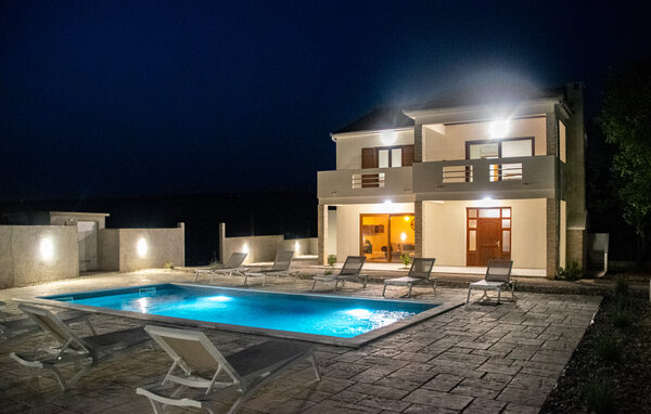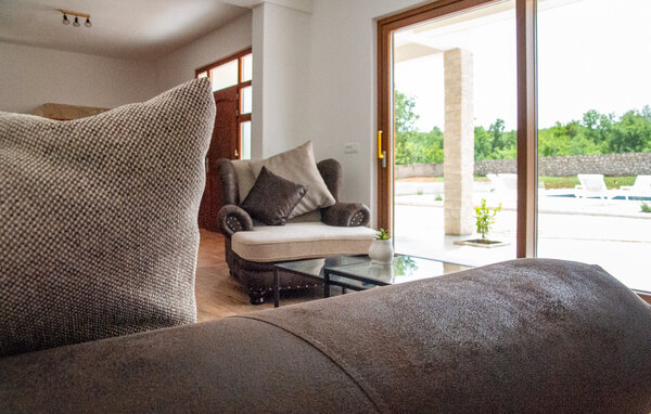 Freuen Sie sich auf einen traumhaften Urlaub in diesem modernen Ferienhaus in Posedarje. Genießen Sie ruhige und friedliche Tage auf der großzügigen Terrasse, die mit bequemen Liegestühlen rund um den erfrischenden Pool ausgestattet ist. Entspannen Sie sich, während die Kinder auf dem Spielplatz neben dem Pool Spaß haben. Nehmen Sie Ihr Frühstück am schönen Esstisch in der Essküche ein und genießen Sie die freie Urlaubszeit. Lassen Sie den Tag gemütlich auf dem Balkon ausklingen, von wo aus Sie das glitzernde Blau des Meeres am Horizont erblicken können. Oder verbringen Sie einen geselligen Grillabend mit der ganzen Familie am integrierten Grillplatz im Haus.