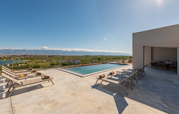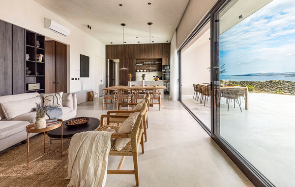 In diesem fantastischen Ferienhaus auf der Insel Pag wird es Ihnen an nichts fehlen. Das luxuriöse, moderne Ambiente, die komplette Ausstattung und die vielen Aktivitätsmöglichkeiten sorgen hier für einen gelungenen Wohlfühlurlaub. Genießen Sie gleich morgens die atemberaubende Panoramaaussicht auf das Meer durch die großflächigen Fensterfronten Ihrer Schlafzimmer. Auch beim gemeinsamen Frühstück am stilvollen Esstisch im Innenbereich oder auf einer der vielen Terrassen Ihres Ferienhauses haben Sie Meerblick. Planen Sie danach die Ausflüge des Tages. Oder spielen Sie im Entertainment-Bereich Ihres Ferienhaus eine Partie Billard oder ein Spiel auf der Spielkonsole. Auch mit Meerblick können Sie draußen im Pool planschen oder auf den Sonnenliegen ein kühles Getränk genießen. In der voll ausgestatteten, stilvollen Küche können Sie lokale Zutaten zu köstlichen Gerichten verarbeiten. Der offene Raum ist eine Oase der Gemütlichkeit und lädt dazu ein, gemeinsam zu kochen und zu gemeinsamen Familienabenden zusammenzukommen.
