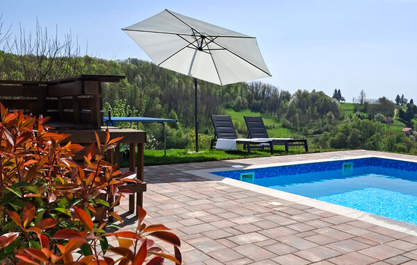 In die Natur eingebettet empfängt Sie dieses schöne Ferienhaus mit Pool, das sich auf einem kleinen Hügel mit Blick auf die umliegenden Felder und Weinberge befindet. Das Haus besteht aus dem Erdgeschoss, in dem sich ein Wohnzimmer, Essbereich mit Küche und ein Badezimmer befinden, und der ersten Etage mit vier Schlafzimmern und einem Badezimmer. Sie können Ihren Urlaub mit einer Vielzahl an Erlebnissen genießen, wie dem nahe gelegenen Spa und Wasserpark Tuheljske toplice, den Krapina-Thermen und den Olimia-Thermen im benachbarten Slowenien. Die Gegend bietet auch ein reichhaltiges Gourmetangebot, so dass Sie die lokale Küche genießen können. Vergessen Sie auch nicht, das nahegelegene Schloss Veliki Tabor und Miljana zu besuchen.
