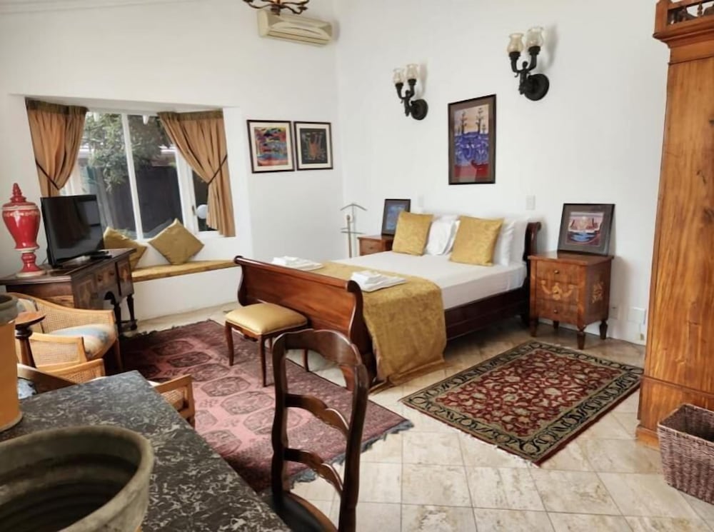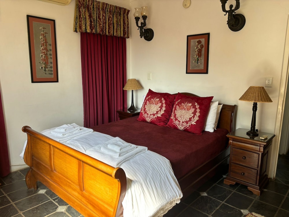 Waterkloof Mansion Boutique Hotel in Pretoria (Waterkloof) ist einen 5-minütigen Fußmarsch von Pretoria Country Club und 5 Minuten Fahrt von Waterkloof Shopping Centre entfernt. Dieses Hotel ist 2,5 km von Botschaft von Spanien und 2,8 km von Brooklyn Mall entfernt. Fühl dich in einem der 8 klimatisierten Zimmer wie zu Hause. Ein WLAN-Internetzugang (kostenlos) ist ebenso verfügbar wie Satellitenempfang. Zur Austattung gehören Safes und Schreibtische; die Zimmer werden täglich sauber gemacht. Entfernungen werden bis auf 0,1 Kilometer gerundet.