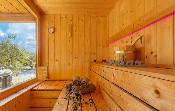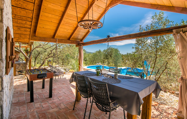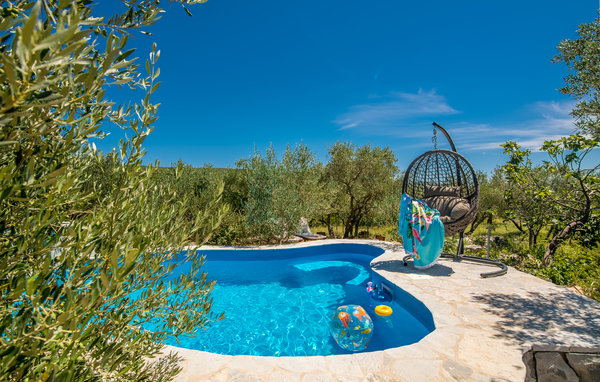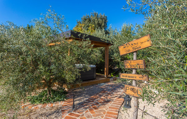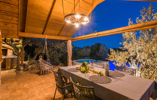 Sichtgeschützt durch Olivenbäume und die herrliche Natur liegt dieser Ferienbungalow im Ort Punat auf der Insel Krk. Er ist mit viel Liebe eingerichtet und reich an Details, so dass Sie sich wie daheim fühlen werden. Das gemütliche Interieur und der herrlich grüne Außenbereich bieten Ihnen den idealen Rahmen für einen perfekten Urlaub. Entspannen Sie sich auf den Sonnenliegen am Pool oder bereiten Sie auf der Terrasse mit Grill köstliche Gerichte für Ihre Familie zu. Das Grundstück ist umzäunt und es sind auch Spielgeräte für Kinder vorhanden. Für Radfahrer ist diese Insel ein ideales Reiseziel und am Strand Dunat in der Nähe können Sie sich am Wasserski-Lift, beim Segeln, Surfen oder Beach-Volleyball vergnügen. Die Restaurants bieten Ihnen ein hervorragendes gastronomisches Angebot und zu den Meeresspezialitäten passt am besten die lokale Weinsorte von Krk „Vrbovacka Zlahtina“, ein exzellenter trockener Qualitätswein.