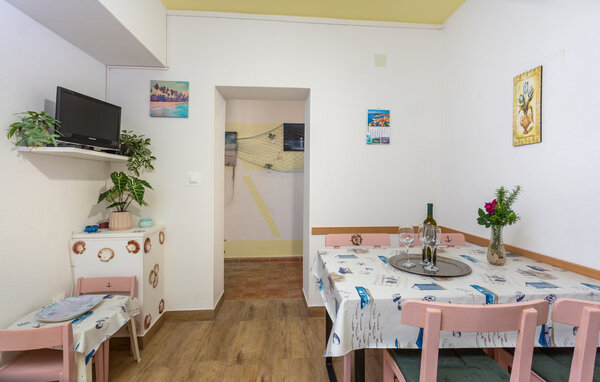 Im malerischen Ort Punat, auf der Insel Krk, befindet sich diese funktionell eingerichtete Ferienwohnung. Zwei Schlafzimmern, 1 Badezimmer, Küche mit Wohnzimmer und eine mit Weinreben überdachte Terrasse mit Grill stehen zur Verfügung. Das Ortszentrum ist nur wenige Gehminuten weit entfernt und so sind Supermärkte und Restaurants in Reichweite. Im Ort selbst gibt es schöne Strände und eine Uferpromenade, die durch den ganzen Ort führt. Ebenso gibt es einen Yachthafen und Bootsservice. Auf Aktivurlauber warten Skilifte, Wakeboarding, Tauchschulen, Reitmöglichkeiten im Ort Njivice, Auquarium und andere Einrichtungen. Besichtigen Sie die gegenüberliegende, kleine Insel Košljun, auf der ein Franziskanerkloster mit Sommerkonzerten zu erleben ist.