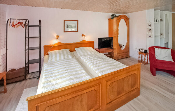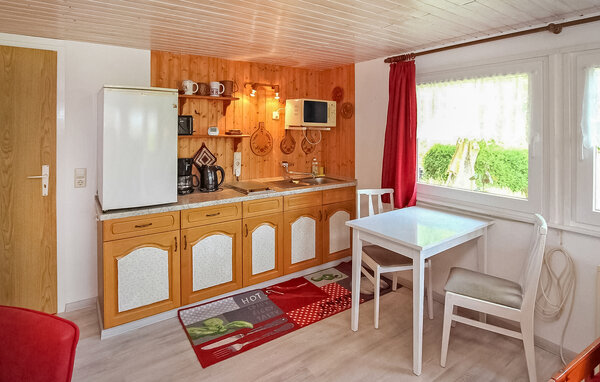 Das naturnahe Ferienhaus liegt separat auf dem rund 1.200 Quadratmeter großen Wohngrundstück des Eigentümers in einer ruhigen Wohngegend am Ortsrand. Ausgestattet mit Kombi. Wohn-/Schlafraum (Doppelbett, Gästebett, Essecke, Sat-TV, Radio), Kochnische (E-Herd, Mikrowelle, Kühlschrank, Kaffeemaschine), Dusche/WC mit Fußbodenheizung. Ebenfalls vorhanden sind WLAN, Terrasse, Grill, 2 Fahrräder zur kostenlosen Nutzung und Parkplatz. Im Gesamtpreis sind Bettwäsche, Handtücher, Wasser und Endreinigung enthalten. Vor Ort zu zahlen: Stromkosten nach Verbrauch und Kurtaxe. Haustiere: Auf diesem Grundstück ist ein Hund erlaubt (der Eigentümer hat selbst eine Dackelhündin. Das Grundstück ist umzäunt).
