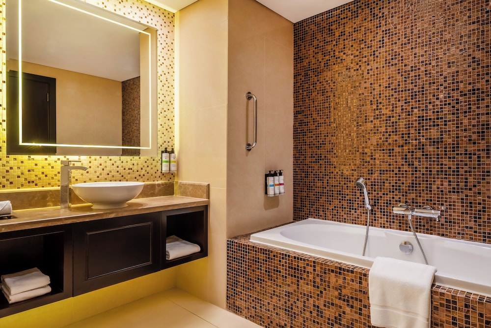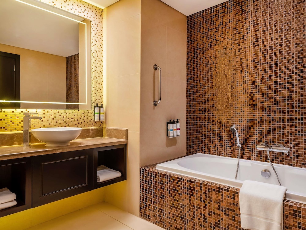 Pullman Resort Al Marjan Island in Ras Al Khaimah ist nur 9 km von Al Hamra Mall und 31,5 km von Al Manar Mall entfernt. Dieses Hotel in Strandnähe ist 9,4 km von Al Hamra Golfclub und 13,4 km von Al Hamra Marina and Yacht Club entfernt. Fühl dich in den 299 Zimmern, die individuell eingerichtet sind und Minibar und einen Flachbildfernseher bieten, wie zu Hause. In deinem Zimmer findest du ein Memory-Foam-Bett mit hochwertige Bettwaren vor. Ein WLAN-Internetzugang (kostenlos) ist ebenso verfügbar wie Satellitenempfang. Es gibt eigene Badezimmer mit Badewannen oder Duschen, die über Regenduschen und kostenlose Toilettenartikel verfügen. Entfernungen werden bis auf 0,1 Kilometer gerundet.