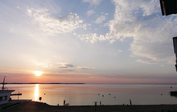 Im ersten Obergeschoss präsentiert sich das Appartement „Mitteldeck“ mit einem wunderschönen Blick auf die Weiten der Müritz. Genießen Sie die Aussicht auf den See direkt aus dem Schlafzimmer oder dem Wohnraum. Auch auf einem der zwei überdachten Balkone können Sie es sich zu jeder Tageszeit bequem machen: Genießen Sie Ihr Frühstück auf dem landseitigen Ostbalkon in der wärmenden Morgensonne mit Blick in das benachbarte Naturschutzgebiet. Ab Mittag wandert die Sonne auf den Westbalkon. Dort können Sie mit dem herrlichen Blick auf die Müritz den Tag genießen und atemberaubende Sonnenuntergänge über der Müritz erleben.