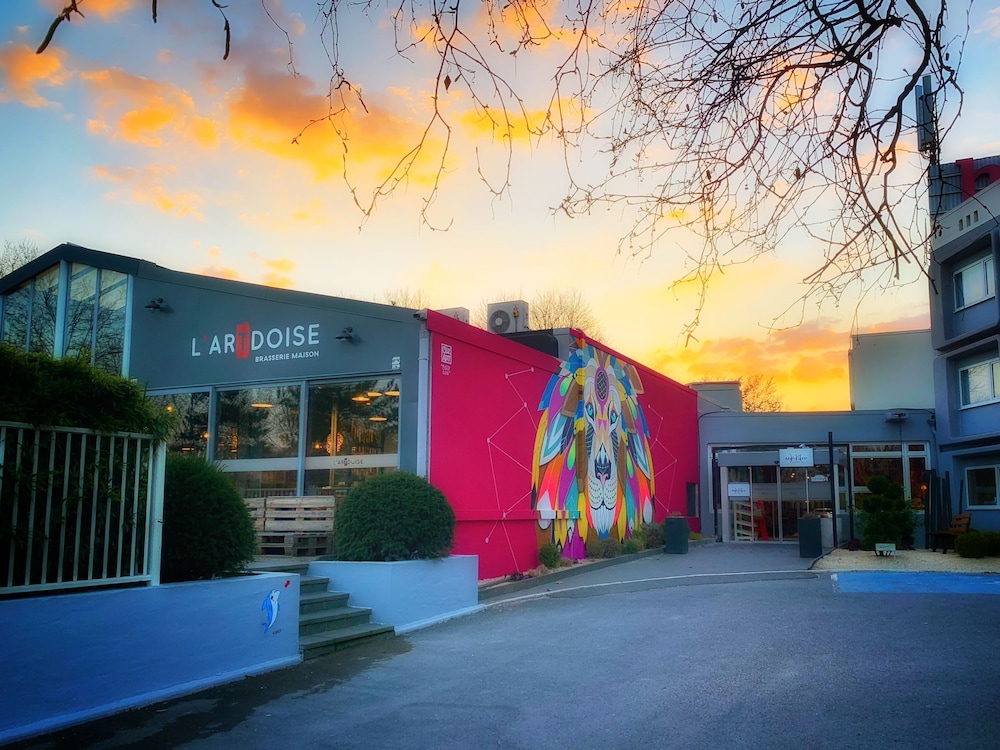 Mercure Reims Parc des Expositions in Reims liegt im Geschäftsviertel, nur 15 Gehminuten von Ausstellungszentrum Reims und Parc de Champagne entfernt. Dieses Hotel ist 2 km von Domaine Pommery und 2,4 km von Champagne Taittinger entfernt. Buche einen Aufenthalt in einem der 101 Zimmer mit LCD-Fernseher. In deinem Zimmer findest du ein Pillowtop-Bett mit hochwertige Bettwaren vor. Smart-TVs mit Satellitenempfang garantieren Unterhaltung und es gibt außerdem einen WLAN-Internetzugang (kostenlos). Es sind eigene Badezimmer mit Badewannen vorhanden, die über kostenlose Toilettenartikel und Haartrockner verfügen. Entfernungen werden bis auf 0,1 Kilometer gerundet.