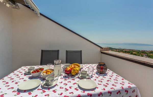 Die Wohnung ist funktional und modern für Ihren angenehmen Aufenthalt ausgestattet. Das Wohnzimmer öffnet sich hin zu einer schönen Terrasse mit Panoramablick auf das blaue Meer und die Kvarner Bucht.
