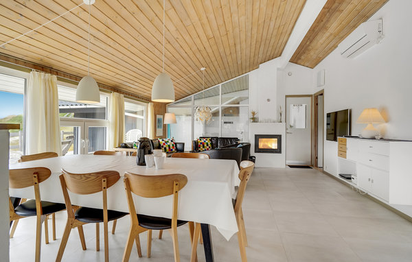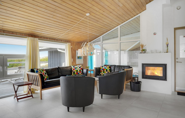 Dieses Ferienhaus liegt an der Bebauungslinie mit Aussicht auf die einzigartige Dünenlandschaft. Sie gehen vom Haus auf eigenem Pfad, ca. 200 m durch die weißen Dünen, zum Strand hin zum Meer. Der blaue Himmel und das schäumende Meer bilden eine märchenhafte Kombination. Eine große Terrasse gehört zum Haus, auf ihr können Sie Sonnenuntergänge und lange, helle Sommerabende genießen. Sie können hier auch im großen Pool planschen oder die Unterwassermassage im Whirlpool genießen. Im Haus finden Sie auch einen gemütlichen Kaminofen. Das Haus wurde renoviert und enthält Wärmepumpen für das Poolwasser und die Heizung. Im Wohnzimmer stehen ein großer Flachildschirmfernseher, eine Bluetooth-Musikanlage mit Radio und CD. Obwohl die öffentlichen Serviceeinrichtungen in der Nähe liegen, können Sie hier einen einen ruhigen und entspannenden Urlaub erleben. Meeresblick gibt es von einer Düne hinter dem Haus. Unweit von Søndervig gelegen, ist es gar nicht weit, wenn Sie etwas unternhmen möchten, z. B. Kaffee trinken, Bowling, Minigolf und Tennis. Ein Golfplatz mit 27 Löchern liegt in der Nähe. Für Angler gibt es hier viele Gelegenheiten für einen guten Fang, entweder in Put & Take Seen oder am Strand. Søndervig beherbergt Geschäfte mit einem guten Sortiment und im Sommer Unterhaltungen für Touristen. Die In Ringkøbing, der weitbekannten 'glücklichen' Kleinstadt Europas, gibt es rund 150 Häuser von 1820 in der Stadtmitte. Besuchen Sie auch 'Strandgaarden', das Museum über das Leben der Fischer und Bauern im 1800 Jahrhundert und das Haus der 'Fischerei' in Hvide Sande. Dort finden Sie die größte Schleuse Dänemarks.