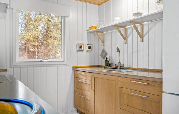Dieses helle und einladende Haus in Lodbjerg Hede bietet Ihnen alles, was Sie für einen gelungenen Urlaub brauchen. Das lichtdurchflutete Wohnzimmer mit bodentiefen Fenstern schafft eine Verbindung zur umliegenden Natur und lädt Sie zum Verweilen ein. Der Holzofen sorgt an kühleren Tagen für Gemütlichkeit, während Ihre Lieben Sie in der Küche bekochen. Genießen Sie Ihren Morgenkaffee oder einen Sundowner auf einer der beiden Terrassen, die für jede Tageszeit den perfekten Platz im Freien bieten. Dieses Haus ist ideal für Familien, die Komfort und Entspannung suchen.